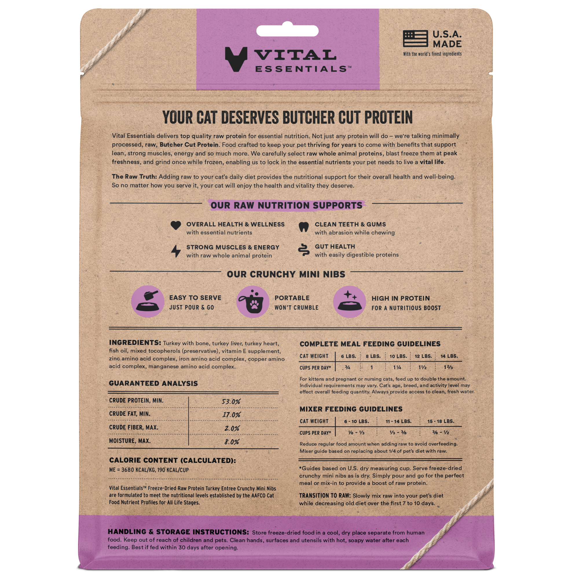 - HEALTHY TURKEY CAT FOOD: Turkey meat is naturally rich in vitamins and minerals, making it a lean, healthy protein source for your cat. Our turkey cat food is proudly USA sourced, made and packaged.