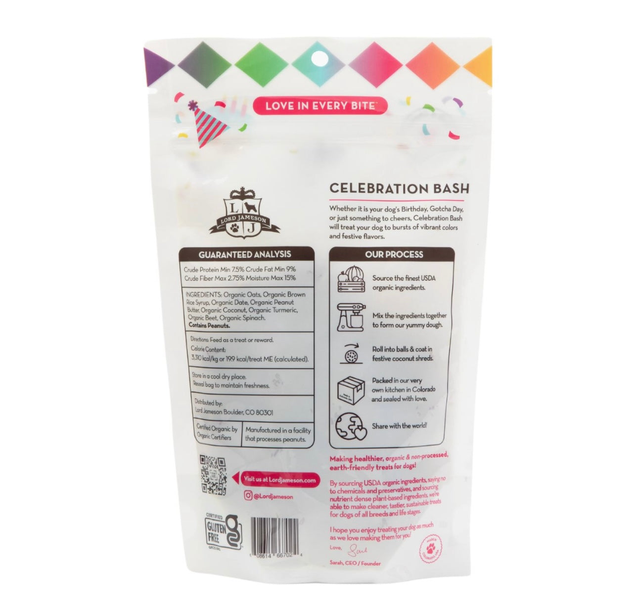 These artistically tasteful color creations are brought to life by organic, plant-based colored coconut shreds and hand-selected superfoods including gluten-free rolled oats and roasted peanuts to keep your pup healthy and happy.