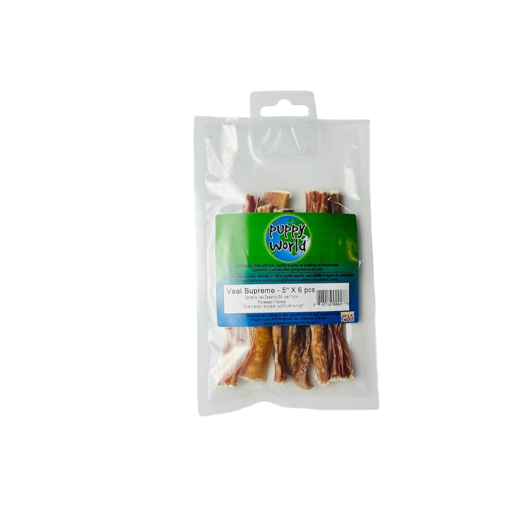 - Veal Chews are a medium lasting chew recommended for small to medium breeds or puppies and senior dogs.