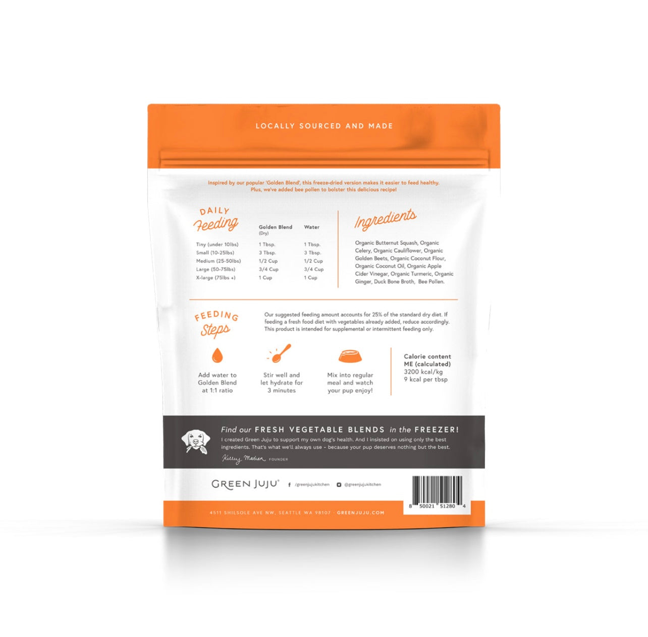 A vibrant mix of golden root vegetables, turmeric, coconut oil, and ginger, this blend supports healthy joints, digestion, and immune response. We’ve added bee pollen, a nutrient-dense superfood packed with naturally occurring vitamins, minerals, and amino acids to help support immune response, ease seasonal allergies, and promote natural energy.