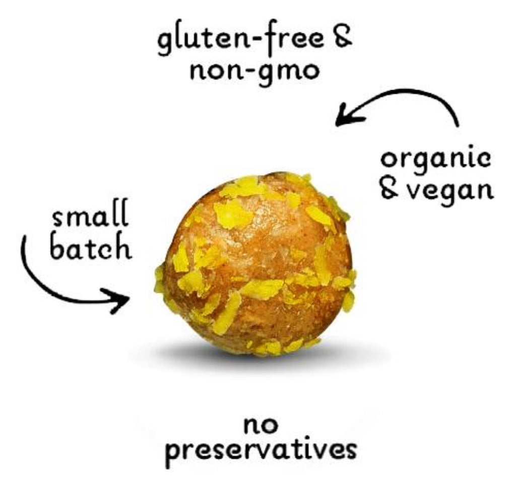 Oats, Organic brown rice syrup, organic date, organic peanut butter, organic banana, organic coconut, organic flax seed, organic chia seed, organic cinnamon, organic turmeric.
