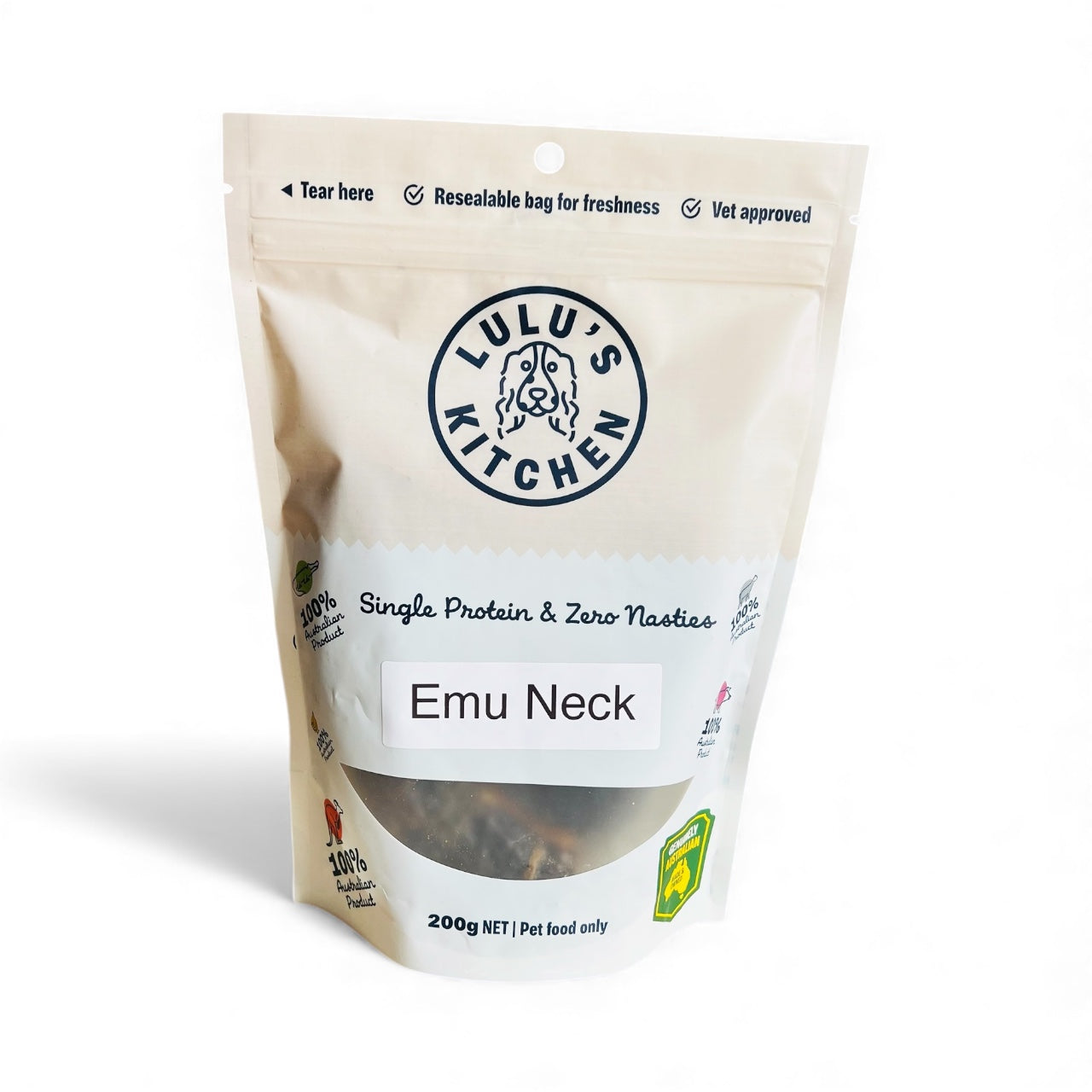 • Emu is an incredibly healthy, low allergen treat for your dog! Our New Emu range is such a fan favorite of our own Lulu!
